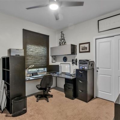 Ceiling Fan(s), Eating Space In Kitchen, Solid Wood Cabinets, Thermostat, Window Treatments