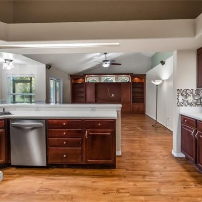 Built-in Features, Ceiling Fan(s), Kitchen/Family Room Combo, Primary Bedroom Main Floor, Solid Surface Counters, Solid Wood Cabinets, Split Bedroom, Vaulted Ceiling(s), Walk-In Closet(s)