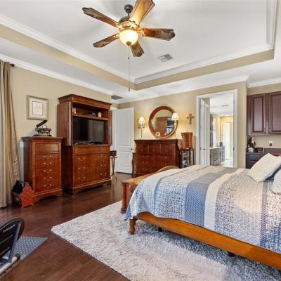 Ceiling Fan(s), Crown Molding, Kitchen/Family Room Combo, Split Bedroom, Stone Counters, Thermostat, Tray Ceiling(s), Walk-In Closet(s), Window Treatments