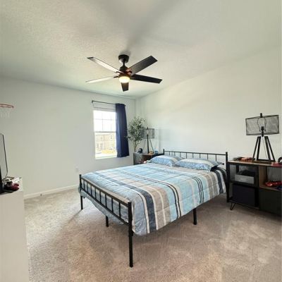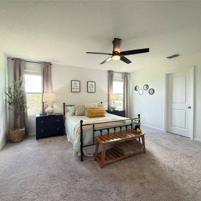 Ceiling Fan(s), Kitchen/Family Room Combo, Open Floorplan, PrimaryBedroom Upstairs, Stone Counters, Walk-In Closet(s), Window Treatments
