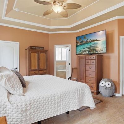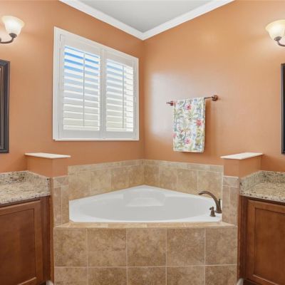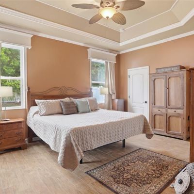 Ceiling Fan(s), Crown Molding, Solid Surface Counters, Solid Wood Cabinets, Walk-In Closet(s), Window Treatments