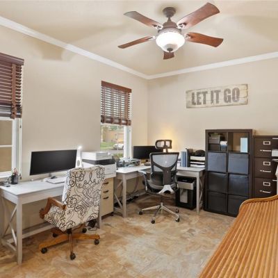 Ceiling Fan(s), Crown Molding, Solid Surface Counters, Solid Wood Cabinets, Walk-In Closet(s), Window Treatments