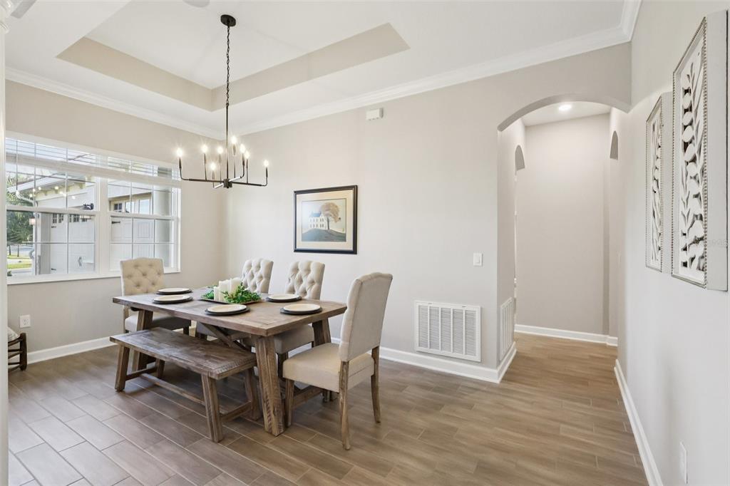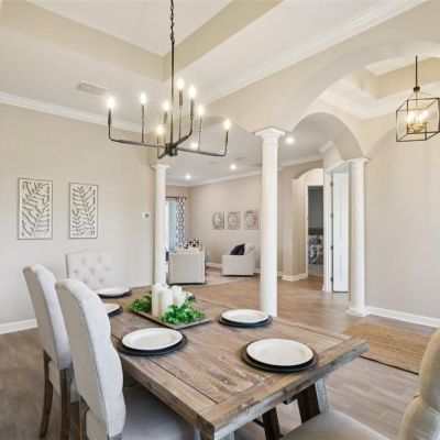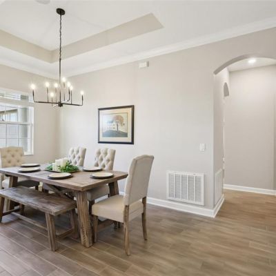 Ceiling Fan(s), Crown Molding, Eating Space In Kitchen, High Ceilings, Kitchen/Family Room Combo, Living Room/Dining Room Combo, Open Floorplan, Primary Bedroom Main Floor, Solid Wood Cabinets, Stone Counters, Thermostat, Walk-In Closet(s), Window Treatments