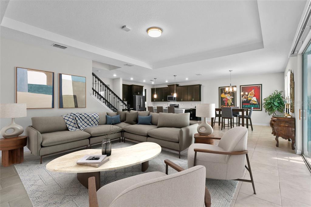 Built-in Features, Eating Space In Kitchen, High Ceilings, Kitchen/Family Room Combo, Open Floorplan, Primary Bedroom Main Floor, Stone Counters, Thermostat, Tray Ceiling(s), Walk-In Closet(s), Window Treatments