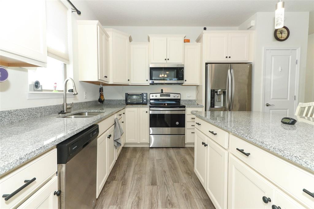 Solid Wood Cabinets, Window Treatments, Ceiling Fan(s), Living Room/Dining Room Combo, Split Bedroom, Stone Counters, Walk-In Closet(s)