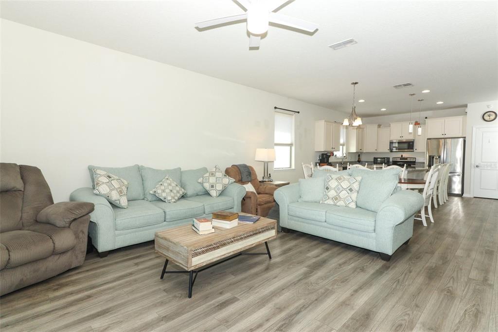 Solid Wood Cabinets, Window Treatments, Ceiling Fan(s), Living Room/Dining Room Combo, Split Bedroom, Stone Counters, Walk-In Closet(s)