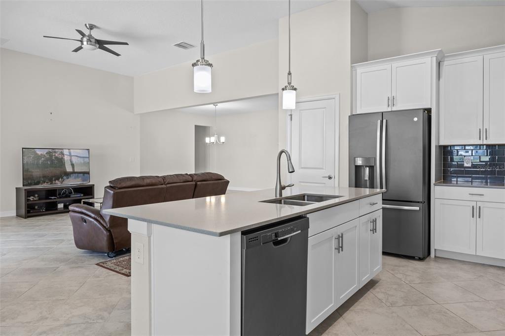 Ceiling Fan(s), Eating Space In Kitchen, High Ceilings, Kitchen/Family Room Combo, Living Room/Dining Room Combo, Open Floorplan, Pest Guard System, Primary Bedroom Main Floor, Stone Counters, Thermostat, Walk-In Closet(s), Window Treatments