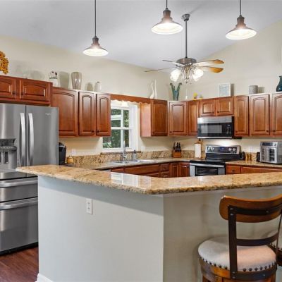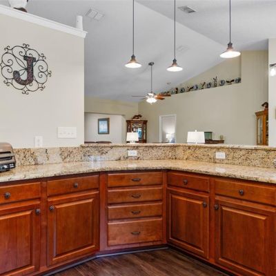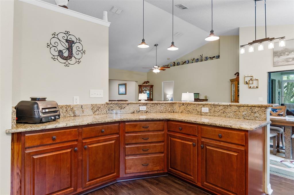 Cathedral Ceiling(s), Ceiling Fan(s), Eating Space In Kitchen, Kitchen/Family Room Combo, Living Room/Dining Room Combo, Open Floorplan, Solid Wood Cabinets, Split Bedroom, Stone Counters, Walk-In Closet(s)