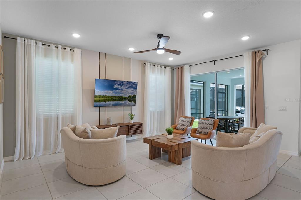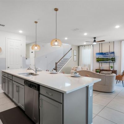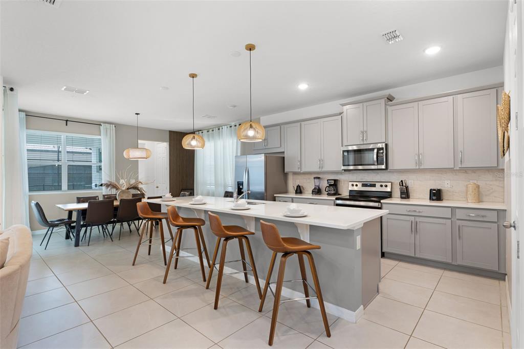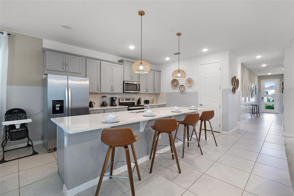 High Ceilings, Kitchen/Family Room Combo, Open Floorplan, Stone Counters