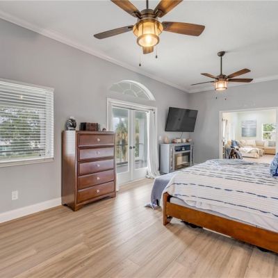 Cathedral Ceiling(s), Ceiling Fan(s), Crown Molding, High Ceilings, PrimaryBedroom Upstairs, Solid Wood Cabinets, Stone Counters, Vaulted Ceiling(s), Walk-In Closet(s)