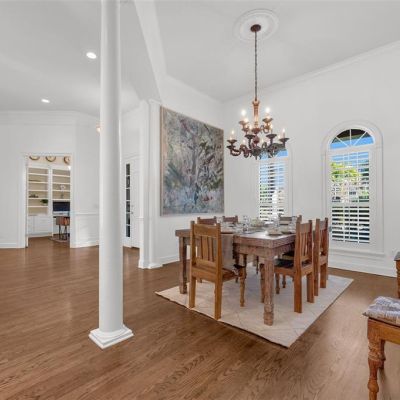 Built-in Features, Ceiling Fan(s), Central Vacuum, Crown Molding, Dry Bar, Eating Space In Kitchen, High Ceilings, Kitchen/Family Room Combo, Open Floorplan, Primary Bedroom Main Floor, Solid Surface Counters, Solid Wood Cabinets, Split Bedroom, Stone Counters, Walk-In Closet(s), Window Treatments