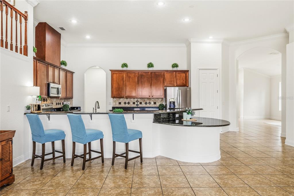 Ceiling Fan(s), Crown Molding, High Ceilings, Primary Bedroom Main Floor, Split Bedroom, Stone Counters, Walk-In Closet(s)