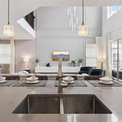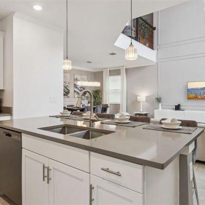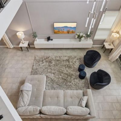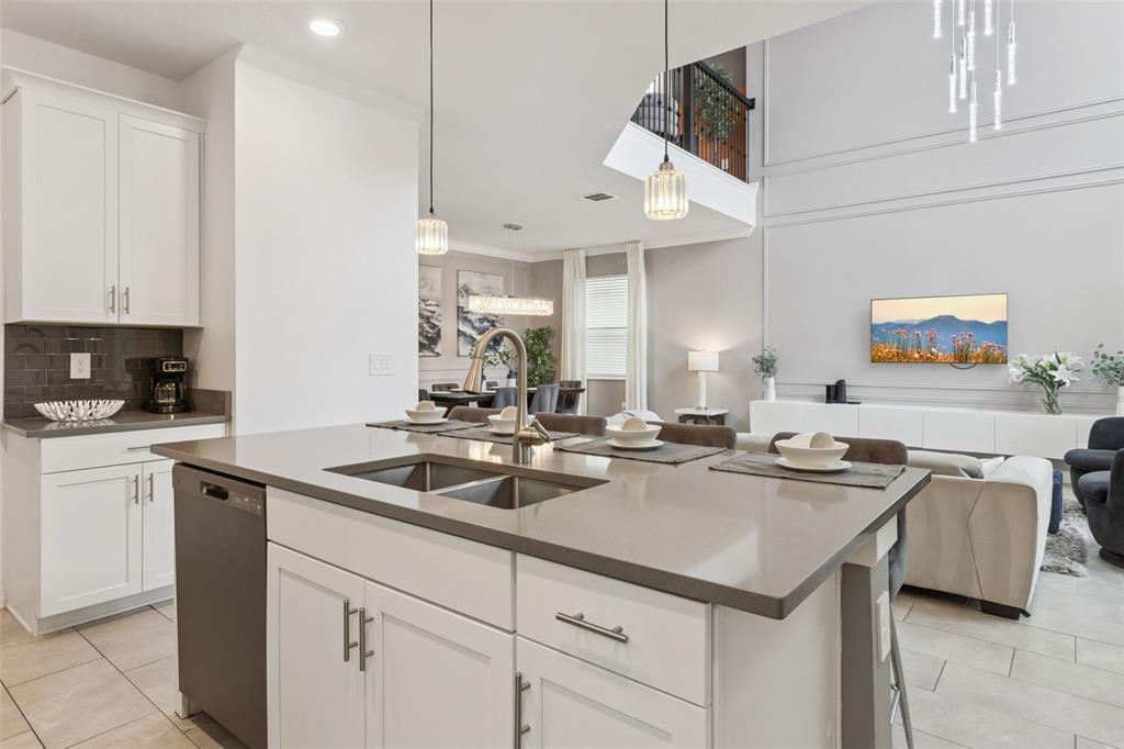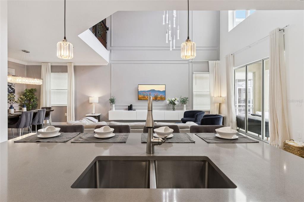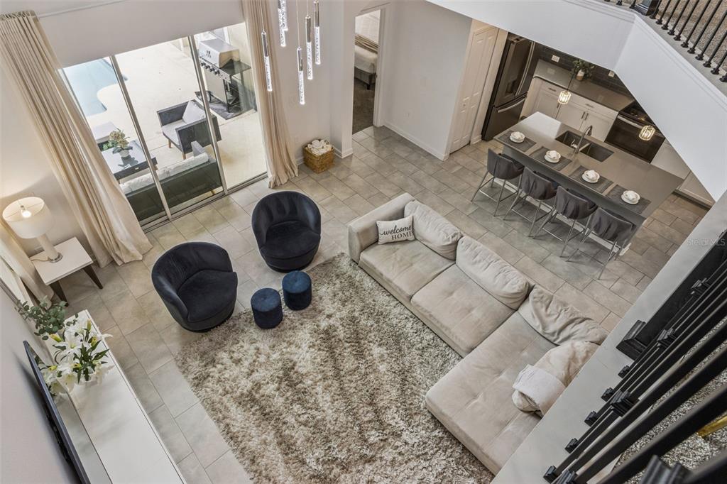 High Ceilings, Kitchen/Family Room Combo, Open Floorplan, PrimaryBedroom Upstairs, Solid Surface Counters, Window Treatments