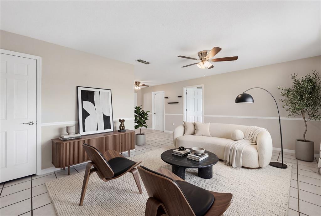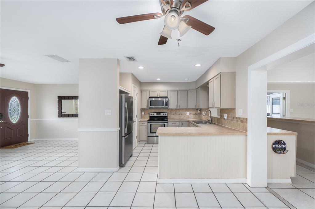 Ceiling Fan(s), Crown Molding, High Ceilings, Open Floorplan, Solid Wood Cabinets, Thermostat, Wet Bar
