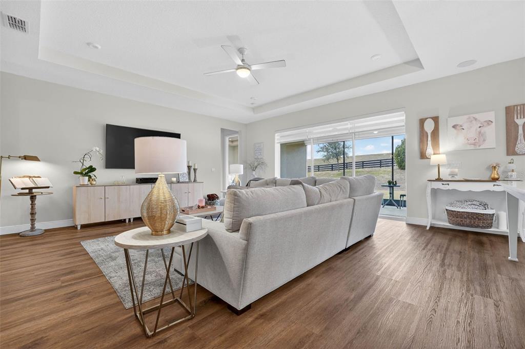 Ceiling Fan(s), Eating Space In Kitchen, High Ceilings, Open Floorplan, Other, Primary Bedroom Main Floor, Solid Surface Counters, Solid Wood Cabinets, Thermostat, Tray Ceiling(s), Walk-In Closet(s), Window Treatments