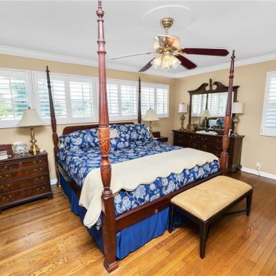 Accessibility Features, Ceiling Fan(s), Chair Rail, Eating Space In Kitchen, Pest Guard System, Solid Surface Counters, Solid Wood Cabinets, Walk-In Closet(s), Window Treatments