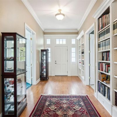 Built-in Features, Ceiling Fan(s), Central Vacuum, Crown Molding, Eating Space In Kitchen, High Ceilings, Kitchen/Family Room Combo, Primary Bedroom Main Floor, Solid Surface Counters, Solid Wood Cabinets, Thermostat, Tray Ceiling(s), Walk-In Closet(s), Wet Bar