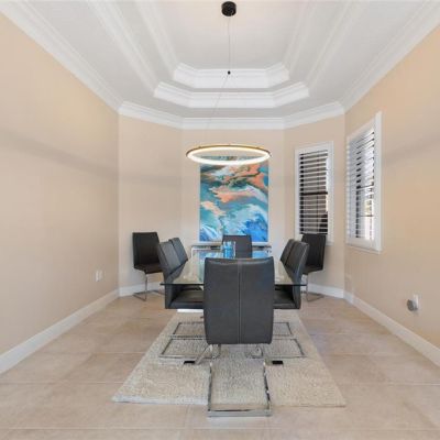 Ceiling Fan(s), Central Vacuum, Coffered Ceiling(s), Crown Molding, Eating Space In Kitchen, High Ceilings, Open Floorplan, Primary Bedroom Main Floor, Solid Surface Counters, Stone Counters, Thermostat, Tray Ceiling(s), Walk-In Closet(s), Window Treatments