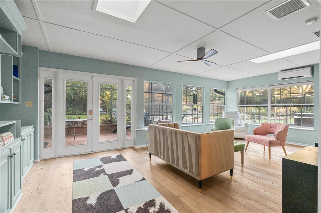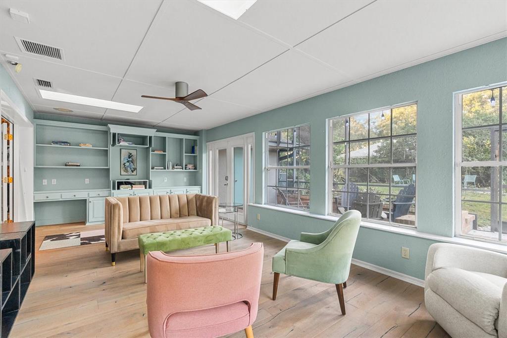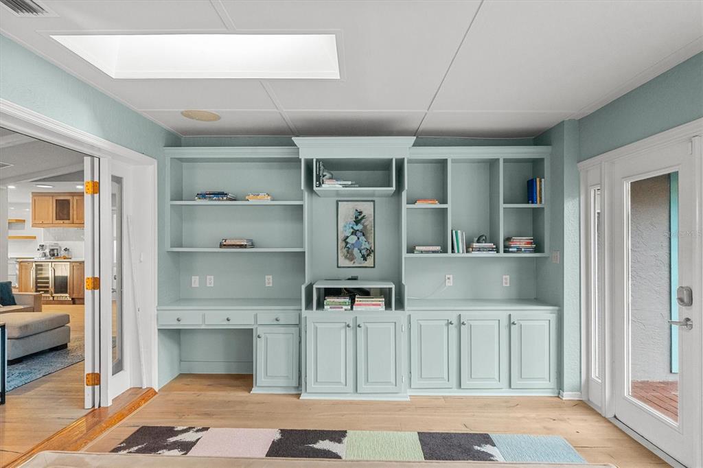 Built-in Features, Ceiling Fan(s), Eating Space In Kitchen, Open Floorplan, Skylight(s), Stone Counters, Window Treatments