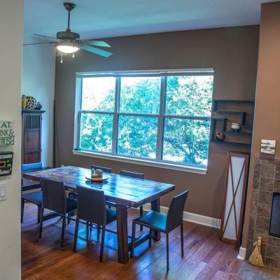 Ceiling Fan(s), High Ceilings, Living Room/Dining Room Combo, PrimaryBedroom Upstairs, Solid Wood Cabinets, Split Bedroom, Stone Counters, Thermostat, Window Treatments
