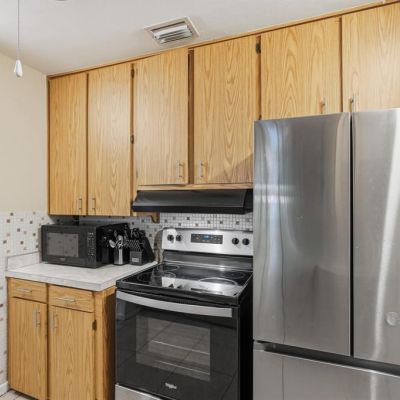 Ceiling Fan(s), Living Room/Dining Room Combo, Solid Wood Cabinets, Thermostat