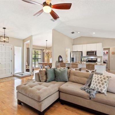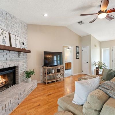 Ceiling Fan(s), Kitchen/Family Room Combo, Open Floorplan, Primary Bedroom Main Floor, Solid Surface Counters, Solid Wood Cabinets, Stone Counters, Walk-In Closet(s), Window Treatments