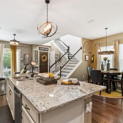 Kitchen/Family Room Combo, Open Floorplan, PrimaryBedroom Upstairs, Solid Wood Cabinets, Stone Counters, Tray Ceiling(s), Walk-In Closet(s), Window Treatments
