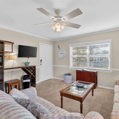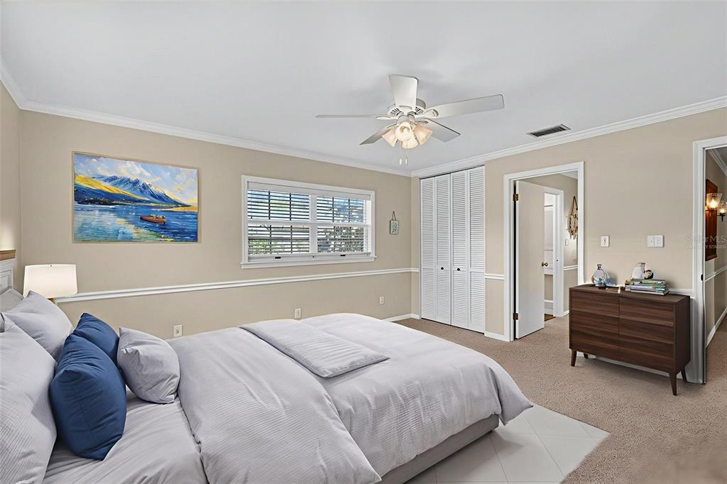 Ceiling Fan(s), Crown Molding, Living Room/Dining Room Combo, Primary Bedroom Main Floor, Window Treatments