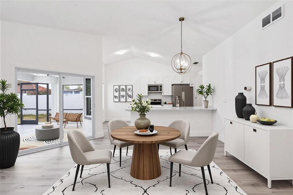 Cathedral Ceiling(s), Ceiling Fan(s), Eating Space In Kitchen, Vaulted Ceiling(s)