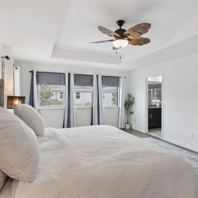 Ceiling Fan(s), High Ceilings, Kitchen/Family Room Combo, Open Floorplan, PrimaryBedroom Upstairs, Stone Counters, Thermostat, Tray Ceiling(s), Walk-In Closet(s)