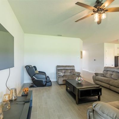 Ceiling Fan(s), High Ceilings, Living Room/Dining Room Combo, Open Floorplan, Stone Counters, Walk-In Closet(s), Window Treatments