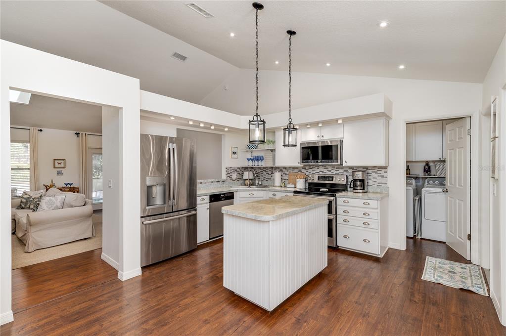 Ceiling Fan(s), Eating Space In Kitchen, High Ceilings, Living Room/Dining Room Combo, Open Floorplan, Skylight(s), Solid Wood Cabinets, Split Bedroom, Thermostat, Vaulted Ceiling(s), Walk-In Closet(s)