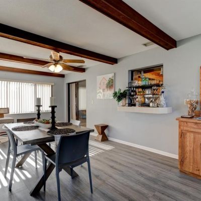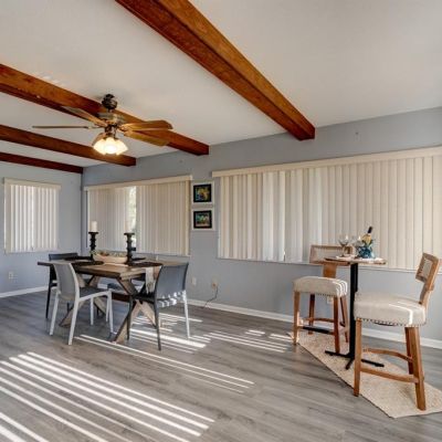 Ceiling Fan(s), Eating Space In Kitchen, Living Room/Dining Room Combo, Open Floorplan, Split Bedroom, Window Treatments