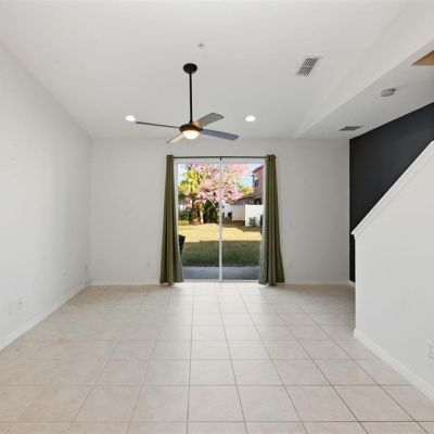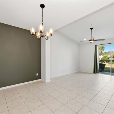 Ceiling Fan(s), Living Room/Dining Room Combo, Open Floorplan, Thermostat, Vaulted Ceiling(s), Window Treatments