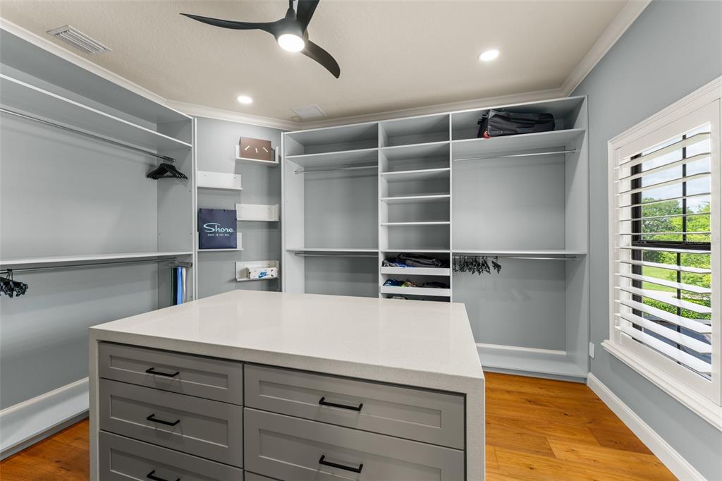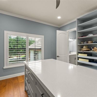 Built-in Features, Ceiling Fan(s), Coffered Ceiling(s), Crown Molding, Eating Space In Kitchen, High Ceilings, Kitchen/Family Room Combo, Open Floorplan, Primary Bedroom Main Floor, PrimaryBedroom Upstairs, Solid Wood Cabinets, Stone Counters, Walk-In Closet(s), Window Treatments
