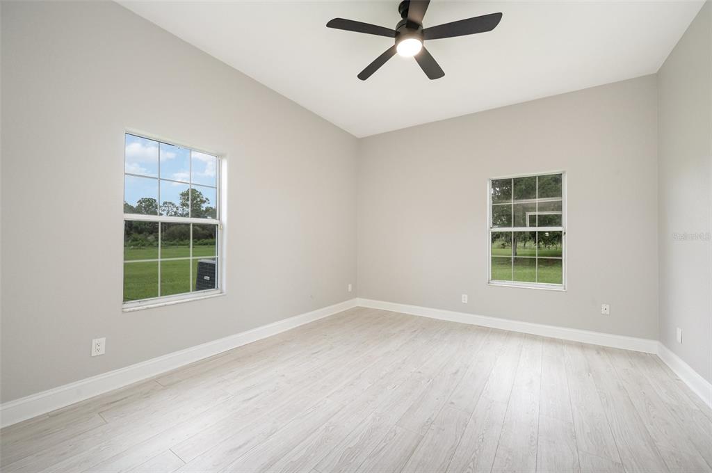 Ceiling Fan(s), Eating Space In Kitchen, High Ceilings, Kitchen/Family Room Combo, Open Floorplan, Primary Bedroom Main Floor, Solid Surface Counters, Solid Wood Cabinets, Split Bedroom, Stone Counters, Thermostat, Vaulted Ceiling(s)