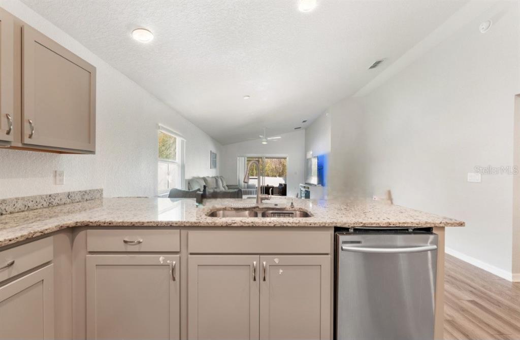 Living Room/Dining Room Combo, Primary Bedroom Main Floor, Solid Surface Counters, Thermostat, Window Treatments