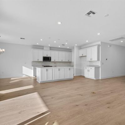 Eating Space In Kitchen, Kitchen/Family Room Combo, Living Room/Dining Room Combo, Open Floorplan, Primary Bedroom Main Floor, Solid Surface Counters, Solid Wood Cabinets, Stone Counters, Thermostat, Walk-In Closet(s)