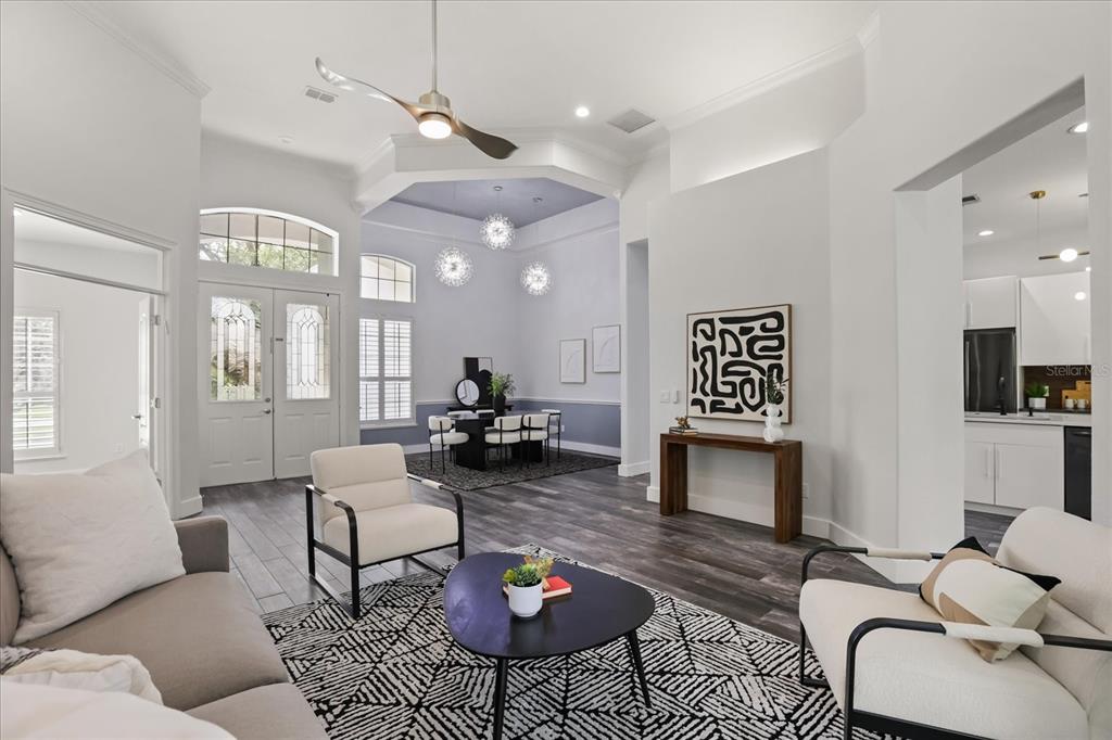 Ceiling Fan(s), High Ceilings, Open Floorplan, Skylight(s)