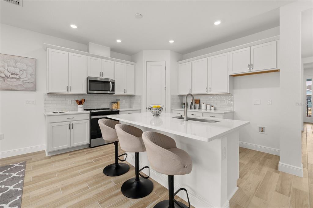 Eating Space In Kitchen, High Ceilings, Kitchen/Family Room Combo, Open Floorplan, Solid Wood Cabinets, Stone Counters, Thermostat, Walk-In Closet(s)