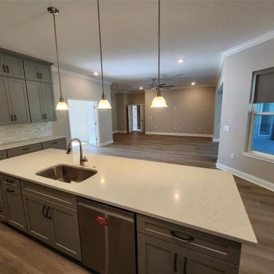 Ceiling Fan(s), Crown Molding, Open Floorplan, Primary Bedroom Main Floor, Solid Surface Counters, Thermostat, Walk-In Closet(s)
